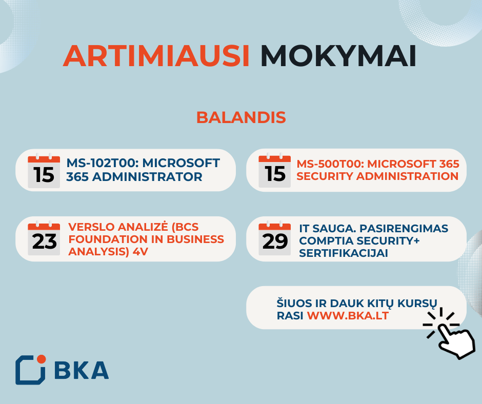 Neradai norimų mokymų - susisiek! Mob. tel. +37067579127 arba el. p. mokymai@bka.lt